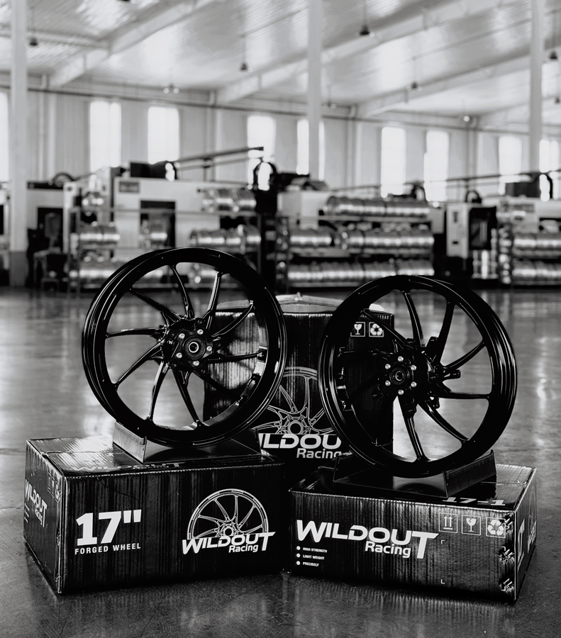 WILDOUT Racing is a professional manufacturer dedicatedto the research, development, and manufacturing of motorcycle alloy wheels. Prioritiz-ing safety and upholding exceptional quality as ourcore principle, we leverage advanced manufacturingprocesses and a rigorous quality control system toprovide motorcycle enthusiasts worldwide withhigh-strength, lightweight forged wheel solutions.